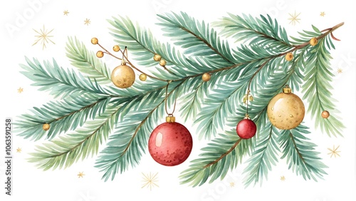 Charming Watercolor Illustration of Fir Branches, Perfect for Holiday Cards