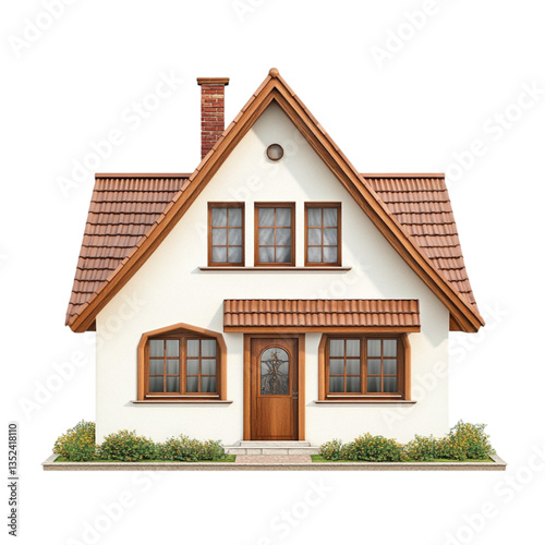 house, home, exterior, white, brown, wooden, roof, window, door, brick, chimney, gable, landscaping, plant, shrub, flower, green, terracotta, architecture, style, design, cosy, charming, welcoming, residential, real estate, property, building, bungalow, fairy tale, picturesque, serene, peaceful, family, comfort, warm, inviting