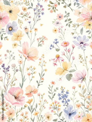 Charming wildflower design in a seamless watercolor pattern, wildflower, seamless, watercolor, nature, colorful