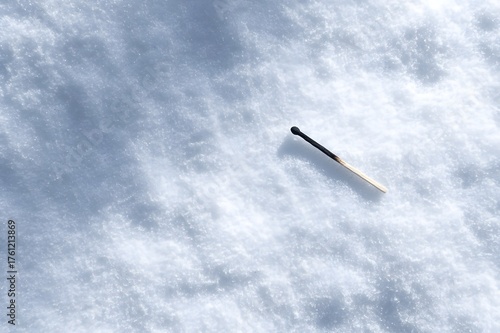 charred, matchstick, lying, snow, white, powder, stark, contrast, minimalist, conceptual, art, photo, dark, light, composition, symbolic, still life, monochromatic, artistic, dramatic, simple, arranged, abstract, striking