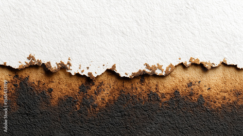 Charred Paper Background: A detailed texture of a burnt paper edge on a white background, perfect for vintage or grunge design concepts.