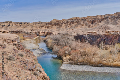 Charyn River going along Yellow Canyon, part of Charyn Canyon, national natural park in Kazakhstan