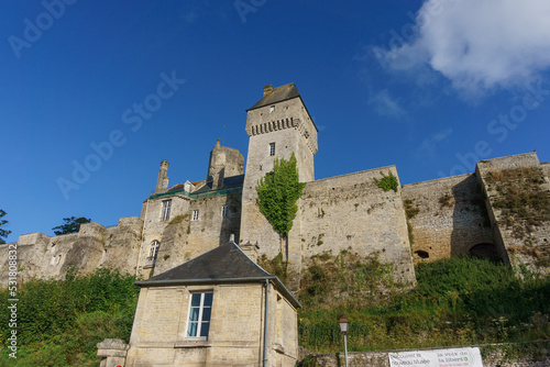 Chateau de Creully castle on a sunny summer evening with blue sky, Creully sur Seulles, Normandy, France