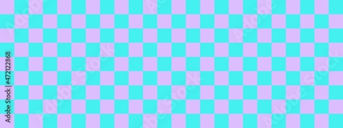 Checkerboard banner. Cyan and Lavender colors of checkerboard. Small squares, small cells. Chessboard, checkerboard texture. Squares pattern. Background.