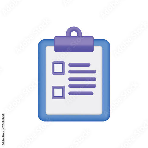 clipboard, checklist, list, task, project, management, icon, three-dimensional, render, document, business, planning, organisation, survey, form, datum, analysis, design, element, illustration, graphic, modern, symbol, signs, blue, purple, white, check, box, line, paper, schedule, record, information, control, report, accounting, monitoring, assignment, confirmation, inventory, statement, filed, item, note, system