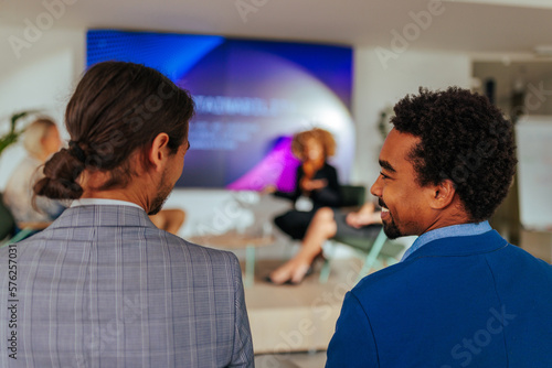 Cheerful businessmen at convention.