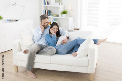 couple, family, home, human face, music, tablet, people, woman, 30s, adult, home, caucasian, connection, contemporary, earphones, enjoying, good-looking, earphones, headset, holding, indoor, indoor, laughing, leisure, lifestyle, listening, living, love, lying, man, modern, mood, person, portrait, relaxed, room, share, sharing, sofa, technology, 30s, together, touching, 2, websurfing, wi-fi, wireless