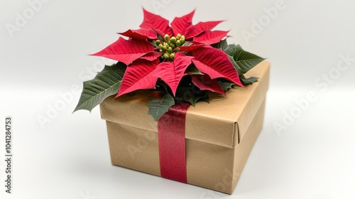 gift, box, cheerful, wrapped, holiday, red, bow, plant, christmas flower, decoration, nature, festive, present, surprise, seasonal, celebration, joy, special, sharing, beauty, cardboard box, ribbon, green, texture, design, arrangement, cosy, cheer, style, event, adornment, traditional, luxury, simple, warmth, elegance, charme, giving, occasion, moment, happiness, thoughtful, care, lovely, craftsmanship, creativity, attracted, colours, visual