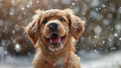 puppy, cheerful, snow, snowfall, winter, catching, tongue, happy, adorable, cute, outdoors, pet, dog, playful, nature, joy, fluffy, expression, scene, closeup, animal, fun, beauty, childlike, wonder, bright, light, cold, season, innocence, moment, happiness, environment, coldness, calmness, warmth, fur, breed, landscape, serenity, smile, small dog