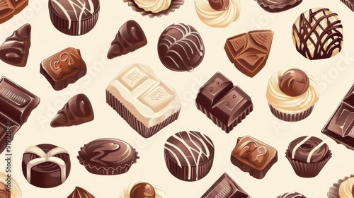 colourful, playful, cheerful, seamless pattern, dessert, artistic, festive, joyful, vibrant, geometric, indulgence, joyous, sugar, treat, whimsical, abstract, homemade, illustration, lollipop, repeating, snack, bakery, candy, caramel, chocolate, confectionery, decorative, graphic design, pattern, tasty, texture, background, baked goods, delicious, epicure, food photography, sweet, topview, chocolate chips, culinary arts, digital artwork, jelly bean, sweet tooth, vivid colors