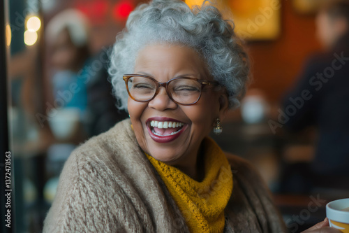 senior, woman, laughing, friends, cafes, hot drink, african, american, happy, cheerful, elderly, retirement, enjoyment, lifestyle, meeting, social, togetherness, conversation, happiness, smile, joy, positive, emotion, eatery, shop, break, leisure, communication, community, gathering, friendship, portrait, indoor, daytime, window
