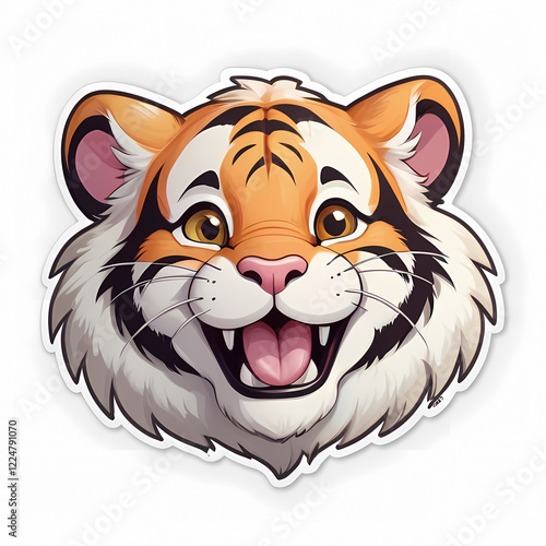 tiger, animal, cute, cartoon, happy, wild, jungle, illustration, graphic, sticker, playful, fluffy, cheerful, expression, stripes, friendly, adorable, whimsical, smiling, character, roar, love, joyful, colourful, art, portrait, nature, ear, tail, nose, eye, fun, design, animal kingdom, playfulness, cheer, happiness, furry, expressive, iconic, companionship, digital, baby, wildlife, safari, fierce, striped
