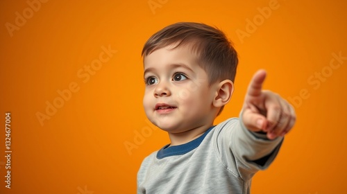 children, toddler, boy, pointing, happy, joyful, innocence, childhood, orange background, expressive, smiling, playful, cute, young, interaction, engagement, portrait, casual clothes, fun, family, emotion, laughter, vivid colors, personality, gesture, adorable, lifestyle, children, imaginative