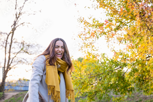 cheerful, young, woman, standing, autumn, park, happiness, fun, laughing, copy space, 1, people, adult, outdoors, day, leisure, season, collection, tree, plant, sunlight, light, happy, joy, positive, emotion, change, brown hair, caucasian, yellow, colours, lifestyle, nature, enjoyment, clear, sky, long hair, hair, italy, female