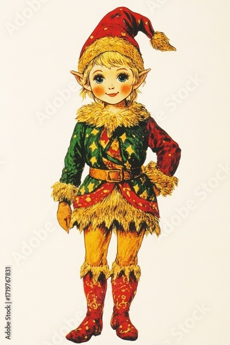 illustration, character, christmas, whimsical, clothing, isolated, festive, holiday, vintage, sunny, person, fairy, human, solid, theme, doll, face, head, tale, elf, toy