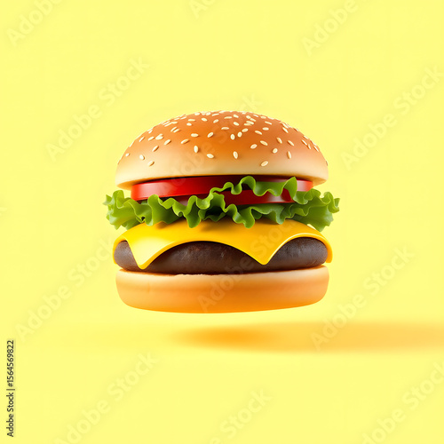 Cheeseburger illustration with shadow on yellow studio backdrop