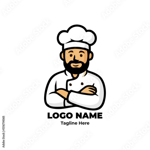 Chef logo, kitchen tools, culinary art, food identity, chef character for gourmet branding design, cafe logo, cooking template, modern kitchen emblem, professional vector mascot