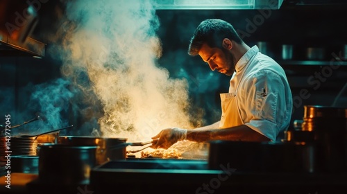 chef, kitchen, cooking, flames, smoke, dinner service, heat, food preparation, culinary, skill, cookware, eatery, culinary arts, intense, excitement, creativity, meal, dish, pan, stainless steel, elegant, cookery, ambience, food, gastronomy, teamwork, evening, tied-up, receipe, expertise, kitchen equipment