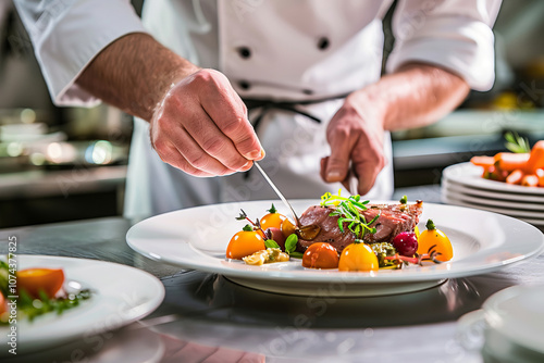 chef, plating, dish, epicure, precision, arrangement, culinary, upscale, professional, cookery, sharpened, detail, artistry, luxury, elegant, fine dining, fresh, meticulous, favor, creativity, garnish, kitchen, refined, culinary arts, craftsmanship, ingredient, cooking, eatery, preparation, aesthetic, skill, texture, sophisticated, attention, perfection, favor, cook, caucasian, arm, hand, closeup