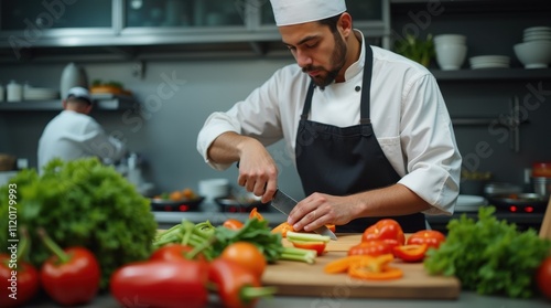 Chef Slicing Vegetables in a Professional Kitchen