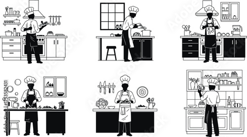chef, kitchen, cooking, food, dish, chop, mix, taste, workspace, culinary, utensil, stove, bowl, counter, shelf, food preparation