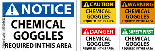 Chemical Goggles Required Sign On White Background