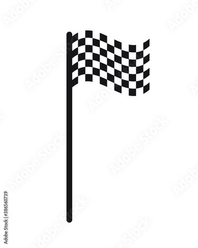 Chequered flag icon. Checkered black and white sign. Check pattern poleflag illustration. Motor sport race finish symbol. Victory championship logo. Isolated on white background.