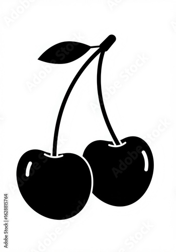 cherry, berry, fruit, food, leaf, silhouette, black, cute, beautiful, funny, drawing, vector, illustration