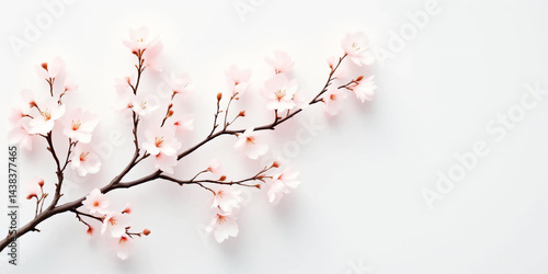 Cherry Blossom Branches: Delicate pink or white blossoms on slender, dark brown branches arranged against a clean, light-colored background.