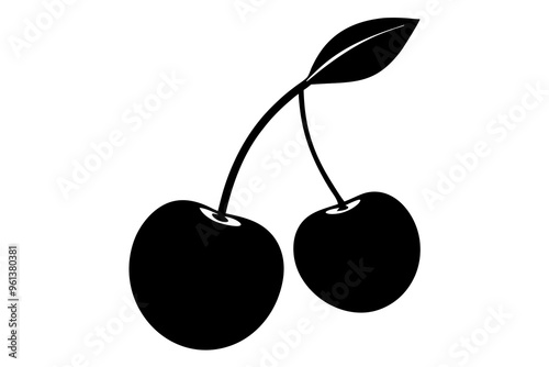 cherry, fruit, icon, silhouette, vector, signs, symbol, berry, bunch, tree branch, black, couple, leaf, healthy, food, illustration, isolated, black-and-white, flat, minimal, design, graphic, energy, fruity, juicy, vegetarian, breakfast
