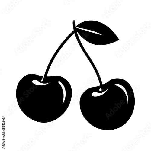 cherry fruits vector silhouette isolated white background, ai generated image