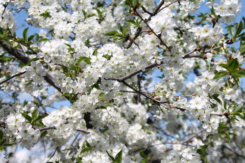tree, spring, blossom, flower, nature, cherry, white, tree branch, sky, flower, bloom, blooming, blue, flora, plant, green, season, beauty, blossom, branch, floral