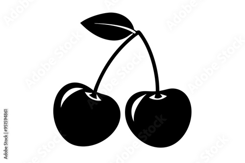 cherry, fruit, leaf, silhouette, food, vector, isolated, sweet, berry, leaf, ripe, illustration, healthy, nature, pear, fresh, vegetarian, juicy, diet, white, health, dessert, fruit, summer, eat
