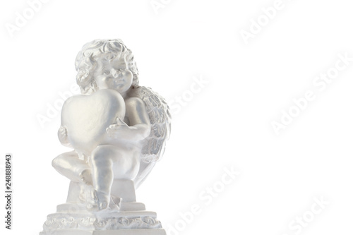 Cherub statue isolated on white background. Angel holds the heart. Love