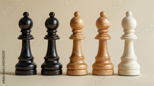Chess Bishops in Varied Hues: A Strategic Lineup of Wooden Game Pieces