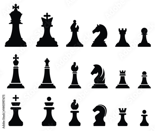 Chess icon set. Chess silhouettes vector icons.