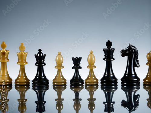 gradient, statue, chess piece, still life, from behind, grey background, standing