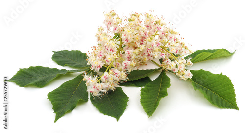 Chestnut flower with leaves.