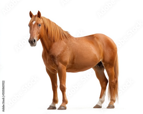horse, equine, animal, mammal, brown horse, white background, isolated, photo, portrait, farm animal, ranch, rural, countryside, nature, wildlife, beautiful, elegant, muscular, strong, powerful, serene, calm, peaceful