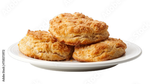 Chicken Biscuit on a plate isolated on transparent png background. Generative ai