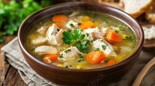 soup, chicken, noodle, broth, vegetable, carrot, corn, parsley, bowl, wooden, table, food, cookery, comfort, dinner, lunch, meal, healthy, delicious, warm, tasty, fresh, homemade, classic, simple, easy, quick, alimentary, savoury, hearty, appetising, cook, receipe, culinary, vegetarian, vegan, gluten, free