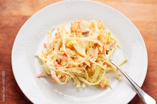 coleslaw, cabbage, carrot, chicken, dish, food, vegetable, horizontal, meal, vegetable