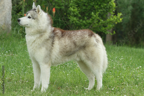chien de traineau debout de profil immobile