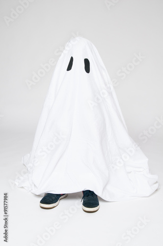 ghost, halloween, children, childhood, skittish, white, eye, costume, fun, funny, homemade, children, dress-up, sheet, playing, foot