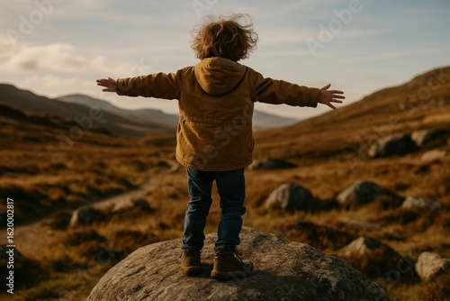 Child embracing nature's vastness.