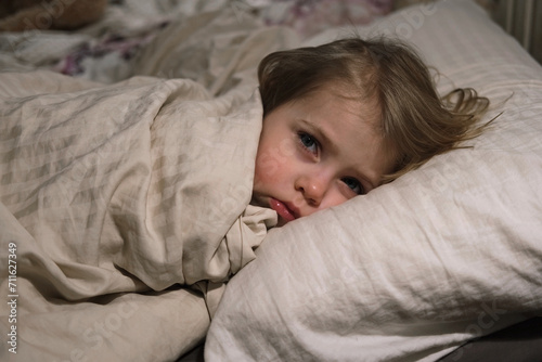 Child Falls Asleep. Peaceful Adorable Baby Sleeping at Home. Slumbering Little Toddler. Two Years Old Girl Sleeps. Nursery Room Interior Background. Serene Dream. Cute Face Close Up. Deep Kid Slumber