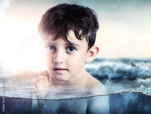 children, boy, water, ocean, sea, wave, swimming, portrait, serene, peaceful, underwater, sunlight, nature, powerful, beauty, calm, face, children, portraiture, photo, artistic, imagination, fantasy, digital