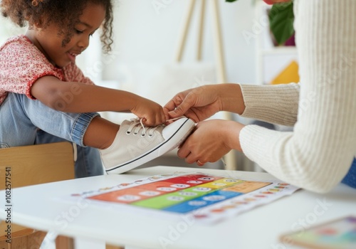 children, learning, attaching, shoe, parental, help, bright, room, guidance, parenting, education, interaction, sneaker, curly, hand, table, card, sharpened, colourful, sitting, connection, playful, teaching, skill, childhood, lacing, casual attire, bonding, concentrated, assistance, young, nurturing, development, practice, supportive, growth, indoor, training, care, toddler