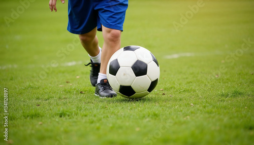 Child passing a soccer ball on the field, enjoying teamwork and physical activity