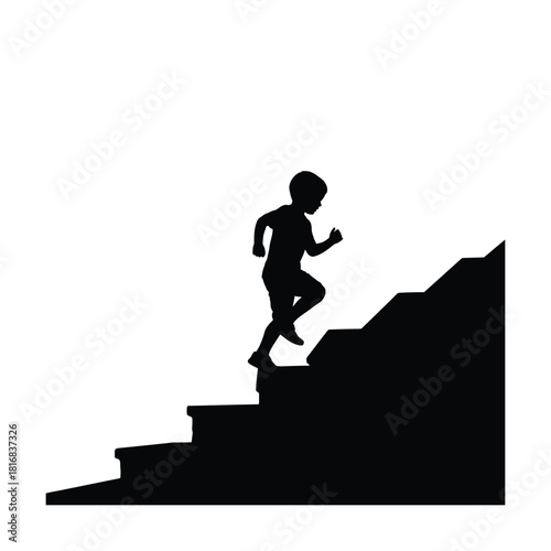 silhouette, children, running, stair, up, climbing, staircase, movement, activity, exercise, fitness, boy, girl, person, figure, black, and, white, monochrome, isolated, simple, graphic, icon, symbol, progress, ambition, goal, determination, challenge, achievement, growth, childhood, play, sport, athletic, energetic, dynamic, vector, outline, shadow, concept, journey